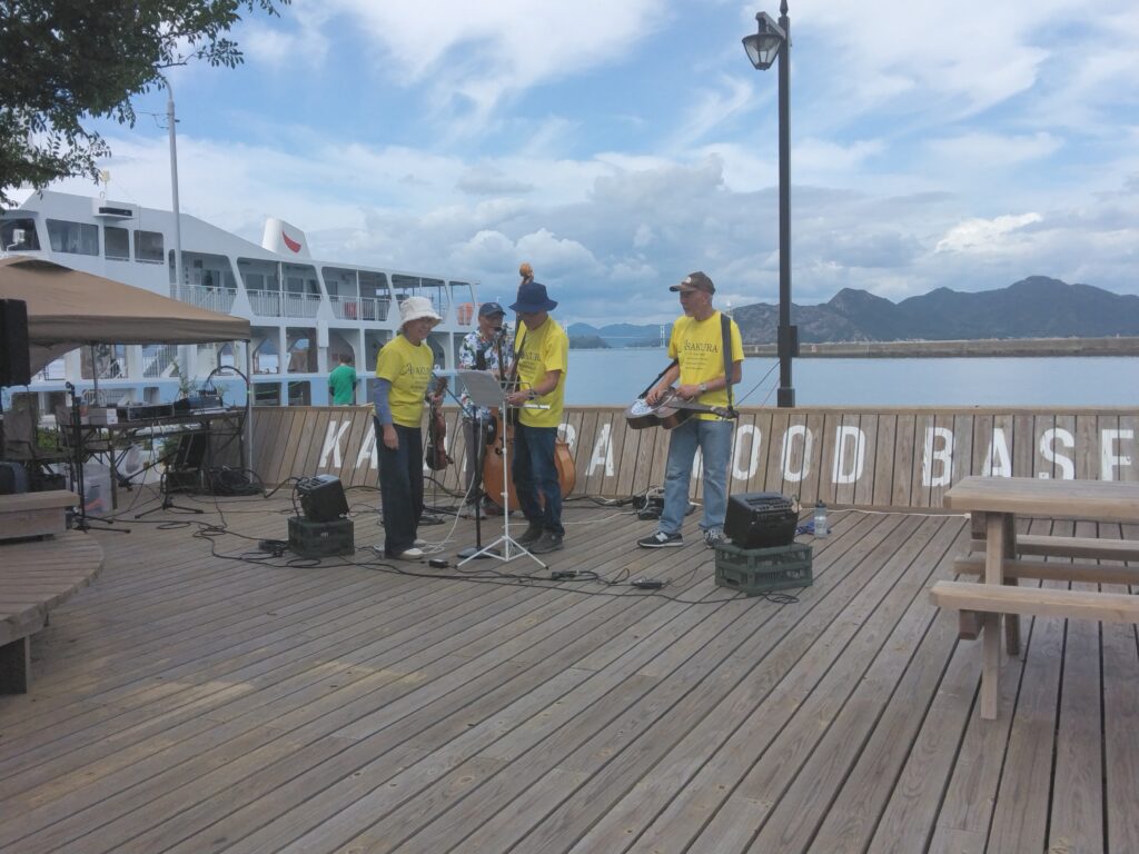 (港でもライブ。シーカーズを思わせる編成だが、曲はカントリー)