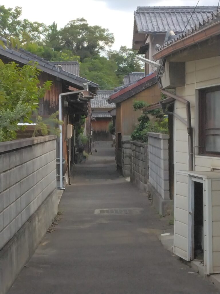 (良い感じの路地を、生活拠点に向けて自転車で走る)